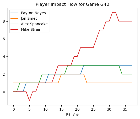 Plots the impact flow for each player in a given game. Defined as winners + errors_forced - unforced errors.