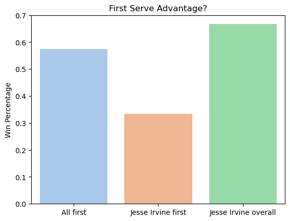 net_games_played =sum([games_played_by_team(team_id) for team_id in team_ids_test]) #Number of games played by Jesse Irvine on any teamavg_first_serve_win_frac_test =sum([team_first_serve_win_frac(team_id)* games_played_by_team(team_id) for team_id in team_ids_test])/net_games_played #Average first serve win frac for Jesse Irvineavg_tot_win_frac_test =sum([team_win_frac(team_id)* games_played_by_team(team_id) for team_id in team_ids_test])/net_games_played #Average total win frac for Jesse Irvineprint("{}'s average first serve win percentage is {:.2f}%".format(player_name_test, avg_first_serve_win_frac_test*100))print("{}'s average overall win percentage is {:.2f}%".format(player_name_test, avg_tot_win_frac_test*100))